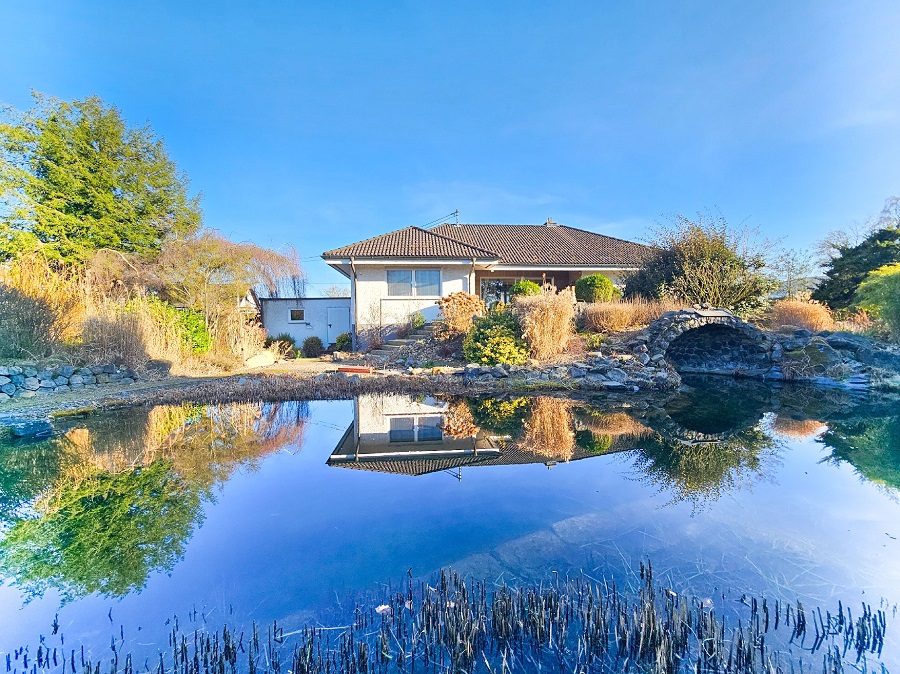 Rarität! Winkelbungalow mit traumhaftem Schwimmteich und Doppelgarage. Nur 5 Min. A3 Bad Honnef Einfamilienhaus auf wunderschön angelegtes Areal - Nähe Zentrumsort Vettelschoß, ca. 5 Min. A3 Abf. Bad Honnef/Linz, 10 Min. Bad Honnef. ...