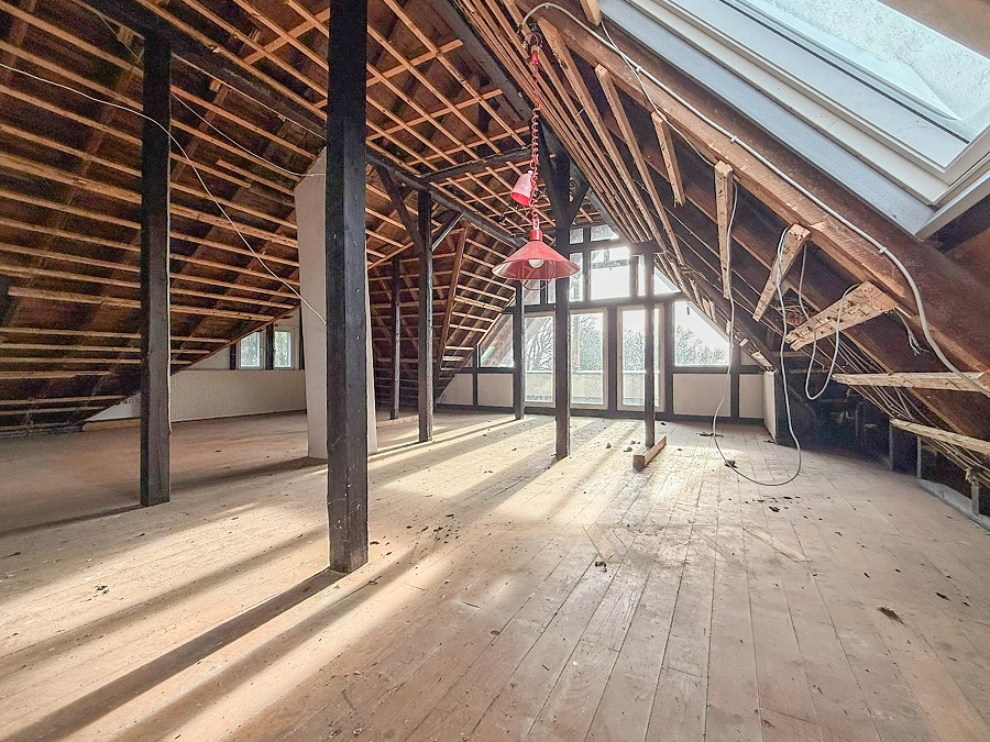 Das Dachgeschoss bietet die Möglichkeit eines Studios mit Schlafzimmer und Bad zu errichten sowie eines Balkons mit Fernblick.