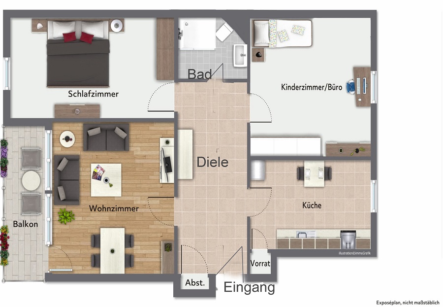 • Eigentumswohnung kaufen Bonn-Beul EJB-227 Balkon, KI generiertes Bild
