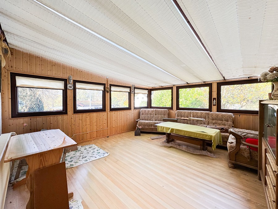 Dieses Einfamilienhaus aus den 1970er Jahren überzeugt durch seine massive Bauweise, den soliden Zustand und das großzügige Grundstück mit vielfältigen Nutzungsmöglichkeiten. Besonders hervorzuheben ist der gemütliche Wintergarten-Anbau mit angrenzender Werkstatt - perfekt für alle, die gerne anpacken und ihre eigenen Ideen verwirklichen möchten. Im Erdgeschoss erwartet Sie ein heller Wohn- und Essbereich, der zum entspannten Beisammensein einlädt. Die separate Küche bietet einen direkten Zugang zur sonnigen Terrasse, ideal für gemütliche Stunden im Freien. Von hier gelangen Sie in den weitläufigen Garten sowie in den Anbau mit Wintergarten und Werkstatt, die zusätzlichen Raum und Nutzungsmöglichkeiten schaffen. Das Tageslichtbad ist sowohl mit einer Badewanne als auch mit einer Dusche ausgestattet. Im Dachgeschoss stehen drei gut geschnittene Schlafzimmer zur Verfügung, die sich individuell als Kinder-, Arbeits- oder Gästezimmer nutzen lassen. Das Haus ist voll unterkellert und bietet dort neben einem Hauswirtschaftsraum auch mehrere Vorrats- und Abstellräume mit reichlich Stauraum. Das Gebäude ist mit einer Ölheizung von Viessmann aus dem Jahr 2001 ausgestattet, die für wohlige Wärme in allen Räumen sorgt. Das gesamte Objekt befindet sich noch weitgehend im Zustand des Ursprungsbaujahres und bietet daher viel Potenzial für handwerklich begabte Käufer, die Freude daran haben, ein Haus mit solider Substanz nach ihren eigenen Vorstellungen zu renovieren und ihm neuen Glanz zu verleihen. Das große Grundstück lädt zum Entspannen, Gärtnern oder individuellen Gestalten ein. Ein kleines Gartenhaus ergänzt das Angebot und kann als Gerätehaus oder gemütlicher Rückzugsort im Grünen genutzt werden. Eine Garage (mit elektr. Tor) sowie zwei Stellplätze vor dem Haus bieten ausreichend Platz für Fahrzeuge. Ein solides Einfamilienhaus mit Herz und Potenzial, eine tolle Gelegenheit für alle, die handwerkliches Geschick mitbringen und ein Zuhause mit Charme und Geschichte nach eigenen Vorstellungen gestalten möchten.